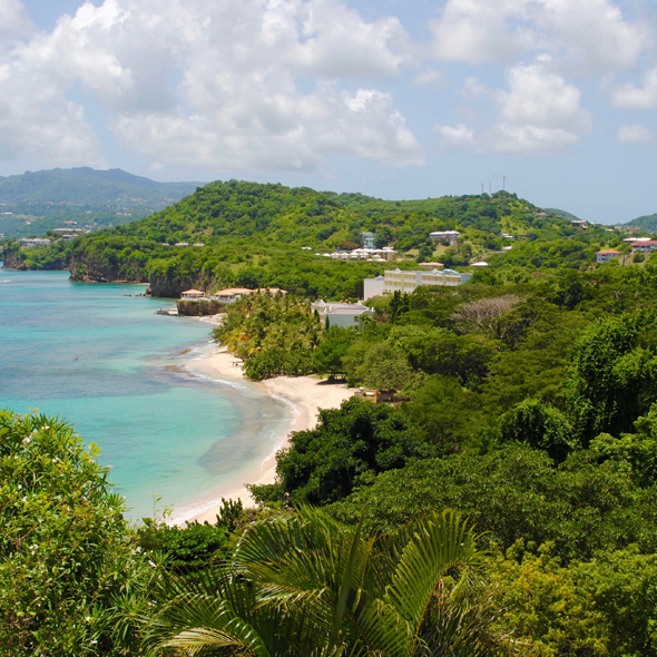 This "Spice Island of the Caribbean" enchants each visitor with aromas of cinnamon, nutmeg, cloves and ginger carried on soft tropical breezes. A Nature lover´s delight, Grenada has it all; rain forests and waterfalls, forested mountains and blankets of flowers. The town of St. George nestles around a natural harbor and holds the French, West Indian and English cultures in a pleasant balance.