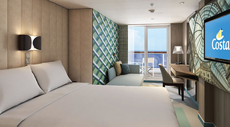 Multiply your benefits when you book a suite: your comfortable and exclusive space on board. A Costa Suite is your private Oasis