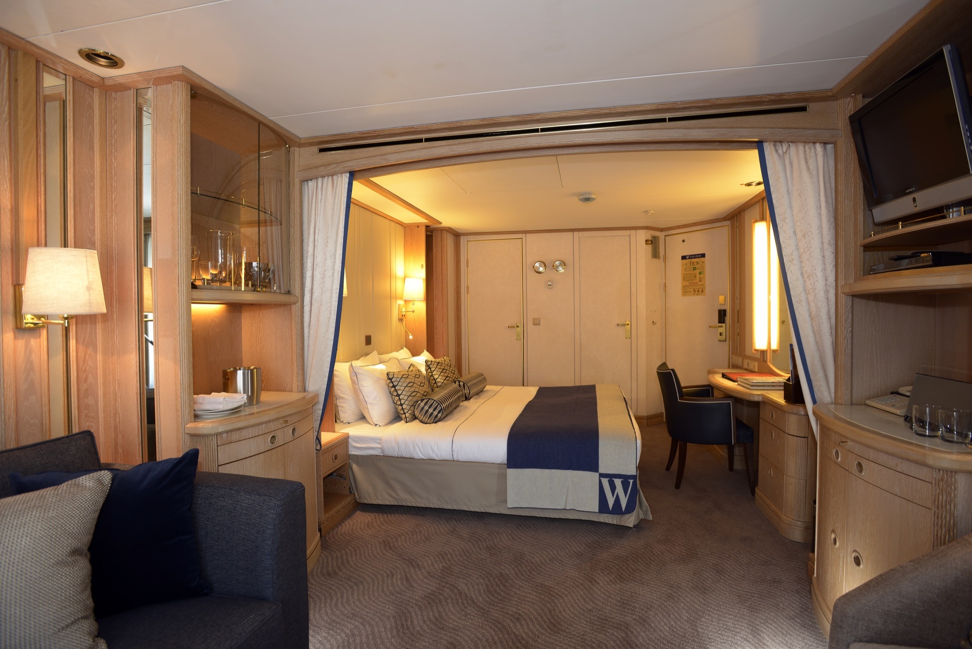 Onboard entertainment facilities include: library, casino, The Lounge, and Signature Shop.