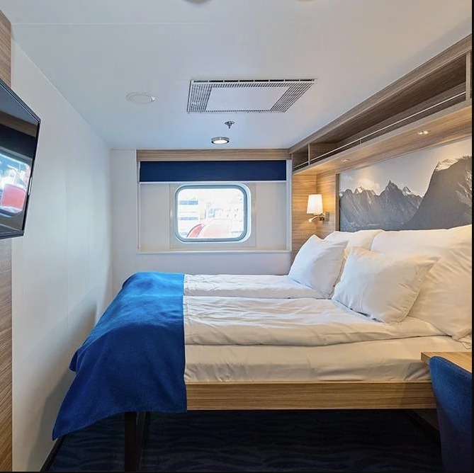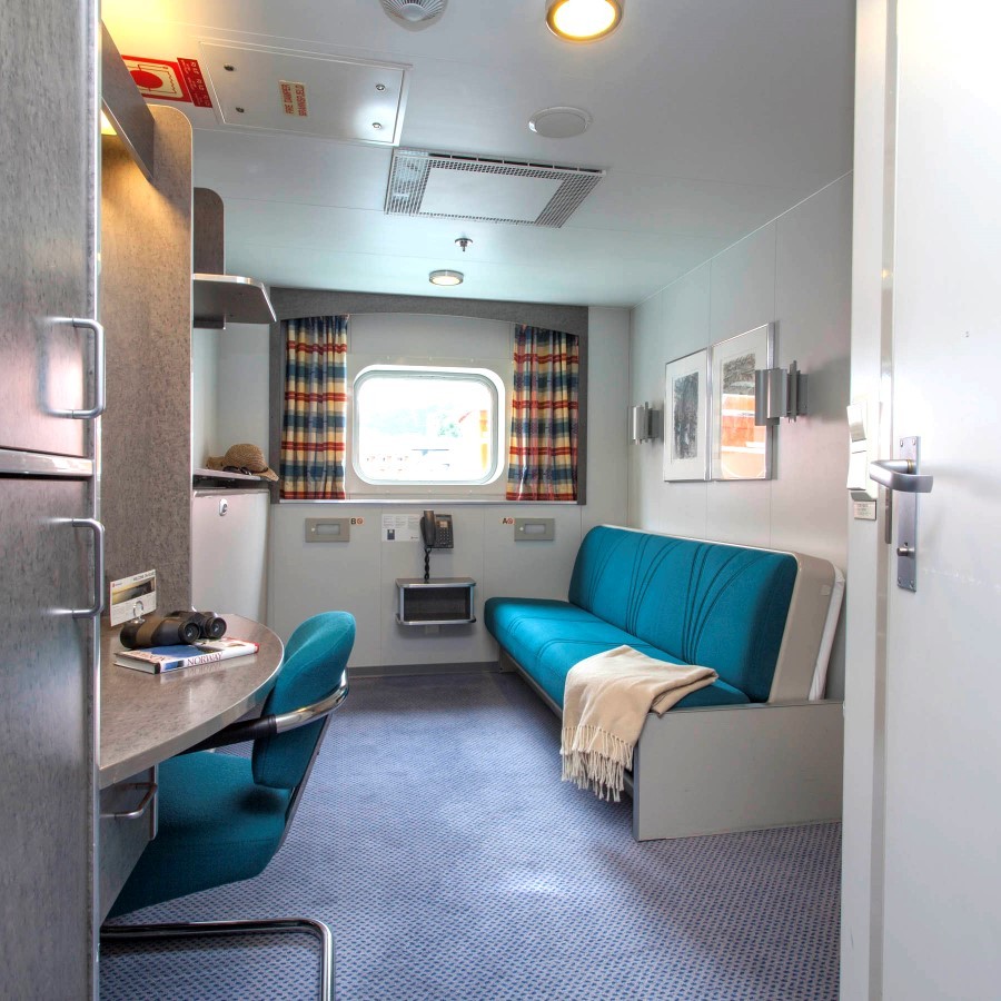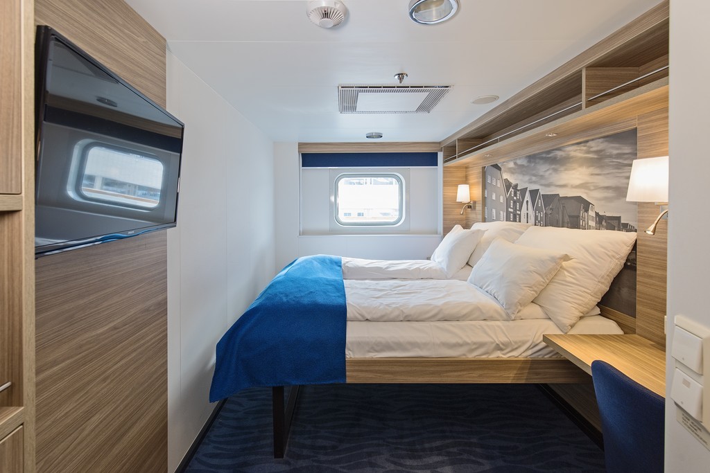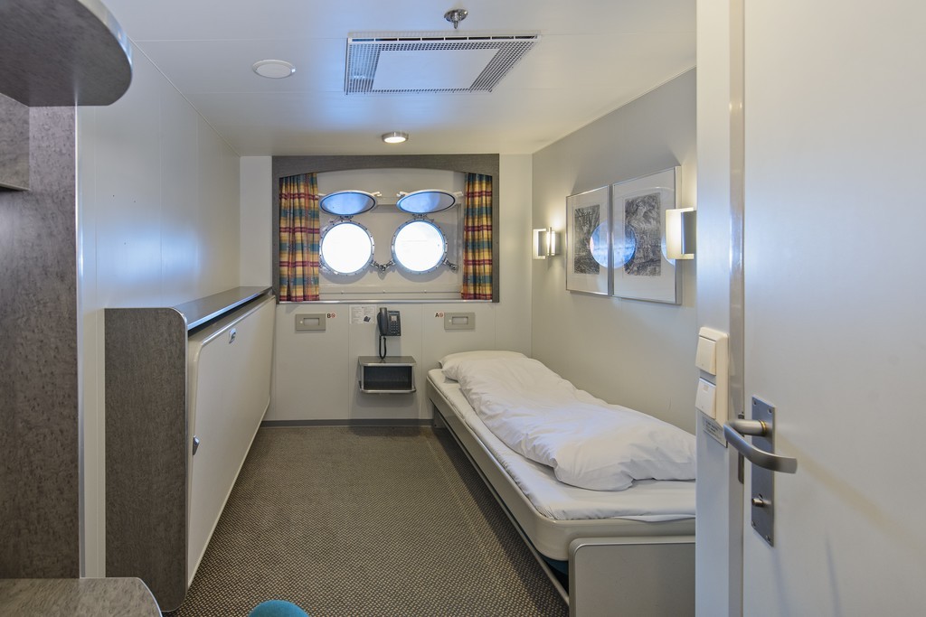 Wheelchair accessible rooms for up to two people with wider door, accessible WC and adjusted bed, as well as one chair, a table, desk and hairdryer. (We have a limited number of wheelchair accessible cabins, so we ask that they are booked by guests who require these cabins. Please inform us in advance of your disability - you will find Hurtigruten contact information on the Booking Confirmation document.)
