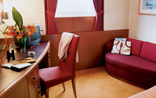 Kick back and relax after a day of Galapagos exploration in a Premium Stateroom featuring large windows and a comfortable sitting area, with world-class amenities that all contribute to your modern luxury experience.Each ocean view stateroom on board Celebrity includes the following world-class amenities that all contribute to your modern experience.AmenitiesPlush 100% cotton bathrobes and towelsFour pillows in every stateroomPremium Custom blended bathroom productsCelebrity Shopping BagStateroom FeaturesExpansive view of the oceanCelebrity's eXhale® bedding featuring the Cashmere MattressKing-sized mattress**Some staterooms may have a trundle bedPlentiful storage space in your bathroom and wardrobeInteractive Television systemIndividual safeDual voltage 110/220 ACMini-fridge*Hair dryerServicesTwice daily housekeeping serviceOur signature friendly personalised service with a guest ratio of nearly 2:1Laundry service*Complimentary beach towel serviceFresh ice delivered to stateroom upon requestDiningComplimentary breakfast, lunch, and dinner in a variety of restaurants24-hour room service†*Additional charges apply**Bed as large or larger than average standard international king-size bed† $9.95 service fee and 20% gratuity may apply