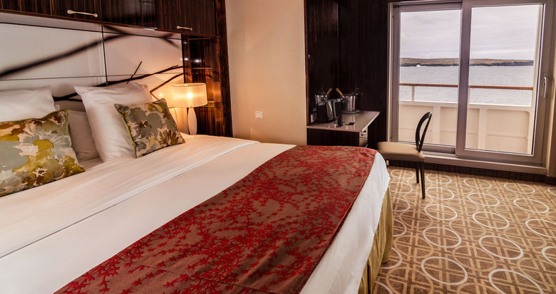 Soak in sunsets on the equator from your private veranda in these elevated accommodations.Soak up the suite experience with floor-to-ceiling sliding glass doors that brings the stunning natural beauty of the Galapagos right to your doorstep. The Junior Suite creates a welcome retreat from a day of immersive Galapagos exploration.Amenities Champagne / Sparkling Wine set-upStock Mini-bar with favourite soft drinks and beersLocally sourced turndown chocolatesLocally sourced and organic bathroom amenitiesPremium bathrobesPremium linens, terry, slipperPillow menu offeringComplimentary premium backpackSunglasses and reading glasses for use while onboardMarine binocularsComplimentary Rain PonchosOpen Deck Amenities: Sunscreen, Aloe vera cooling gel, and lip balm Suite Features Double bed (cannot be separated or moved)Spacious bedroom with private verandaFloor-to-ceiling sliding glass doors with verandaSitting area with convertible full-size sofa bed Services Personal Suite AttendantUnpacking assistanceIn-suite room serviceFull in-suite dinner serviceComplimentary laundry service twice per cruise*Delivery of afternoon in-suite daily delectableMakeup and turndown services*Restrictions apply