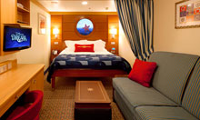Size: 203 sq ft. including verandah Occupancy: Up to 3 guests - some sleep 4 Amenities: A queen-sized bed or two twin beds and a single convertible sofa, some rooms have an upper berth pull-down bed, privacy divider, private verandah, private split bathroom with tub and shower, 22" flat-screen TV, refrigerator, iPod docking station, ample closet space, safe, hairdryer, phone with voicemail, and individual climate control.